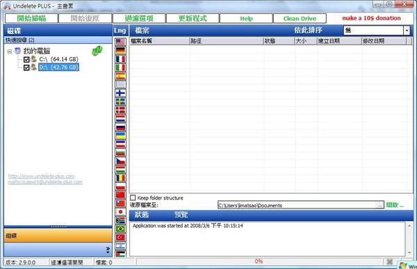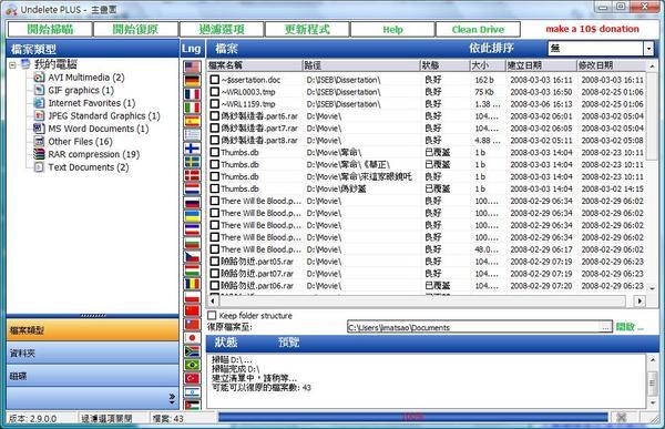 仿間資料救援產品眾多,有的免費有的要錢,電腦軟體當然一分錢一分貨囉,只是說如果只是要單純的資料回復功能那就用操作簡單的工具就好,在此介紹一款免費工具,而且還是多國語言版,可以輕鬆復原硬碟裡被誤刪的資料,前提是他有資料時間的限制,當然不可能復原幾個月前的資料吧,可能可以設定,但是對於及時發現資料誤刪的狀況來說已經很好用了,大家可以試試。