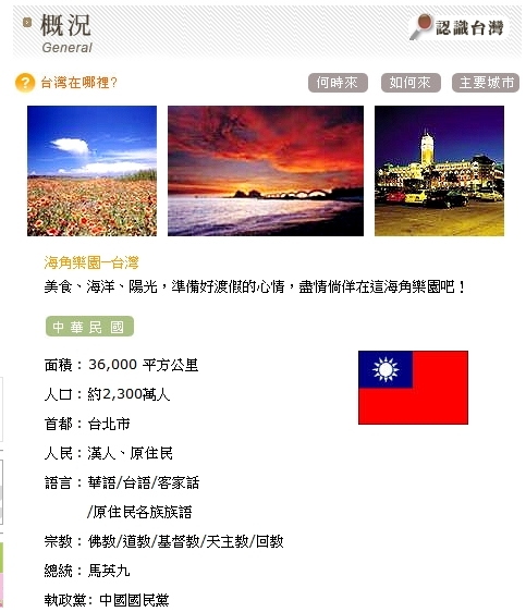 中國台灣標準格式: 沒有國名、國旗、首都、總統與執政黨