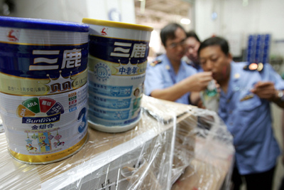 2008年8月 中國三鹿奶粉被檢驗出「三聚氰胺」