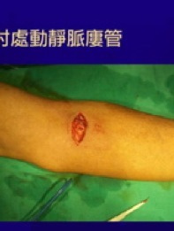 必須先在手臂上開這樣大小的洞,才能夠插管子洗腎