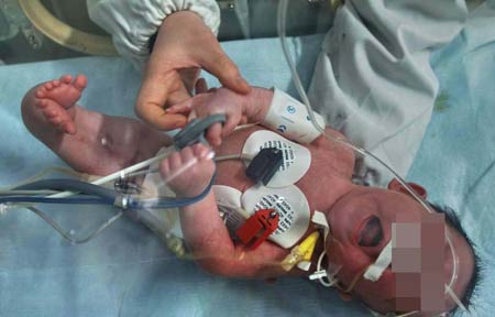 所以腎壞掉的速度是最快的。給大家看嬰兒洗腎的照片?