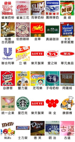 大潤發大賣場、亞信、佳美、上田、特順香、老大房、台威食品公司、